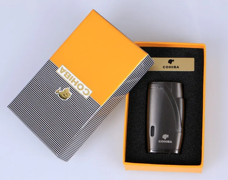 Hot Sale! COHIBA Classic Style Metal Windproof Two Torch Jet Flame Cigarette Cigar Lighter