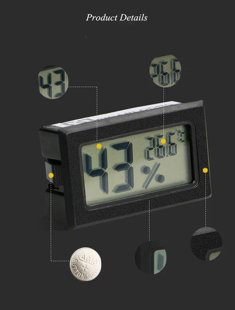 This state-of-the-art electronic hygrometer for cigars offers unrivaled accuracy, ensuring your cigars age gracefully in precisely controlled conditions. Here’s what sets this hygrometer apart: