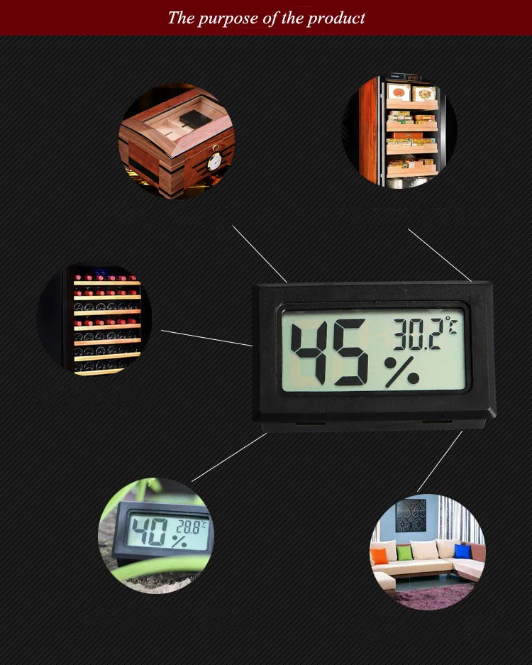 Introducing the Hot Sale Original Precision Electronic Temperature Humidity Portable Special Cigar Hygrometer—your trusted ally in maintaining the ideal environment for your cherished cigars. This advanced Cigar Hygrometer is designed for aficionados who understand that precision and reliability make all the difference in flavor preservation. With its sleek design, this device seamlessly fits into any humidor, offering not just functionality but also a touch of sophistication.