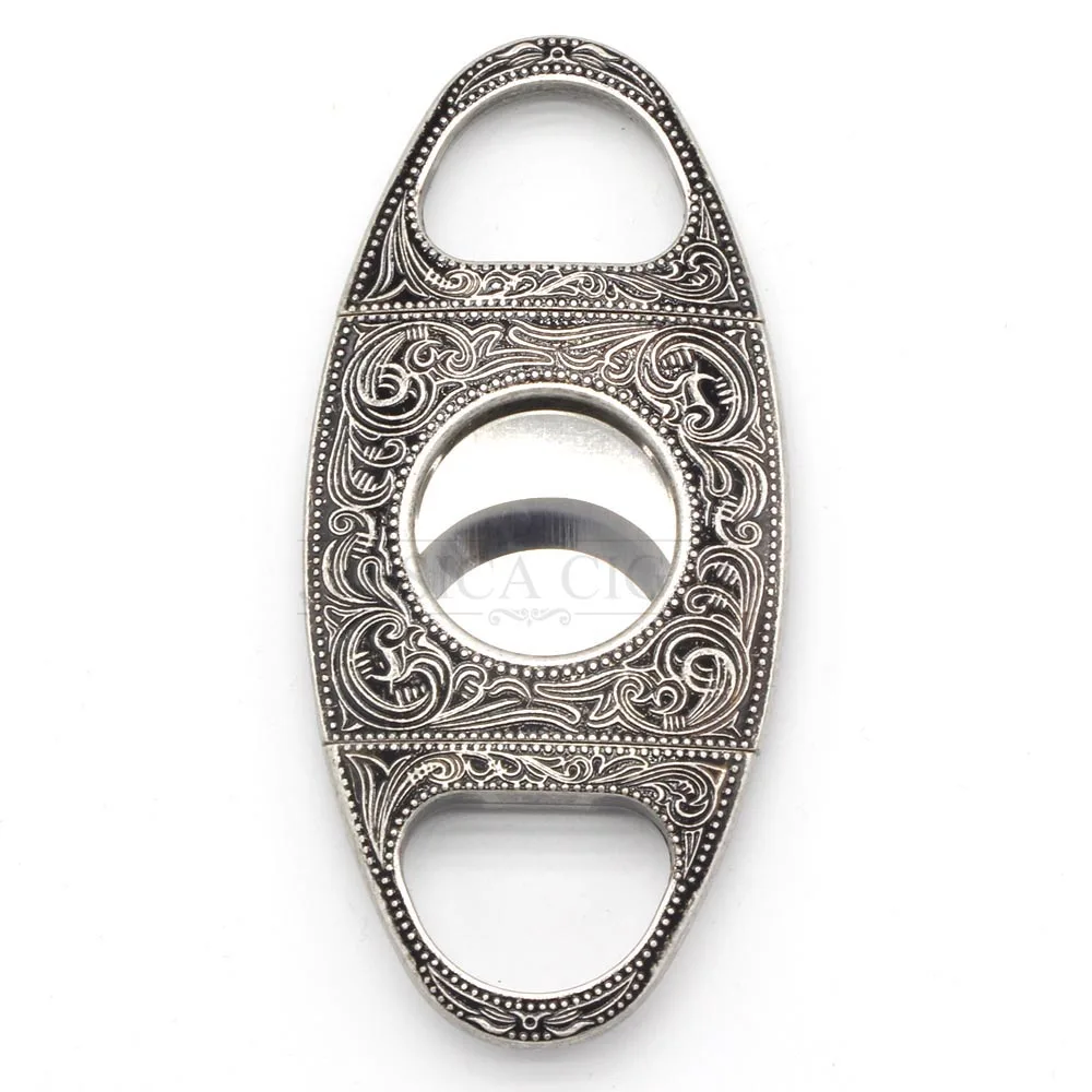 Crafted from high-quality stainless steel, this cigar cutter is robust and designed to last. Its guillotine action provides an effortlessly clean cut, preserving the integrity of your cigar. The antique silver finish adds a touch of classic elegance, making it a standout piece in any collection.