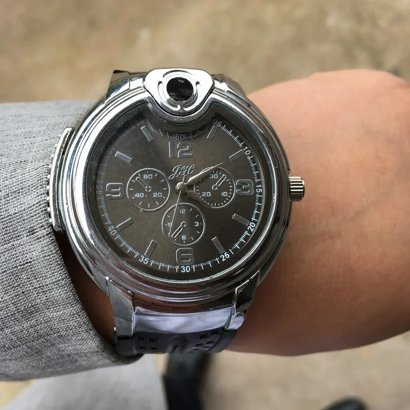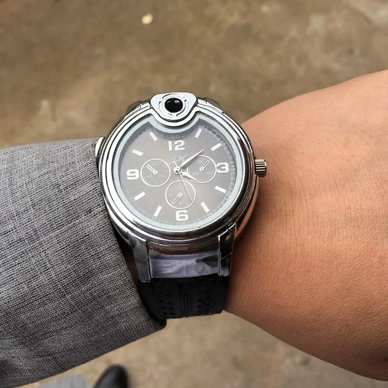 Elevate your smoking experience and make a bold style statement with the Military Lighter Watch. This unique gadget seamlessly integrates a high-performance quartz watch with a refillable gas lighter, providing ultimate convenience and an unmistakable luxury touch among men’s accessories. Whether you’re heading to a special event or need a functional piece during your outdoor activities, this sports wristwatch for smokers is an excellent accessory.
