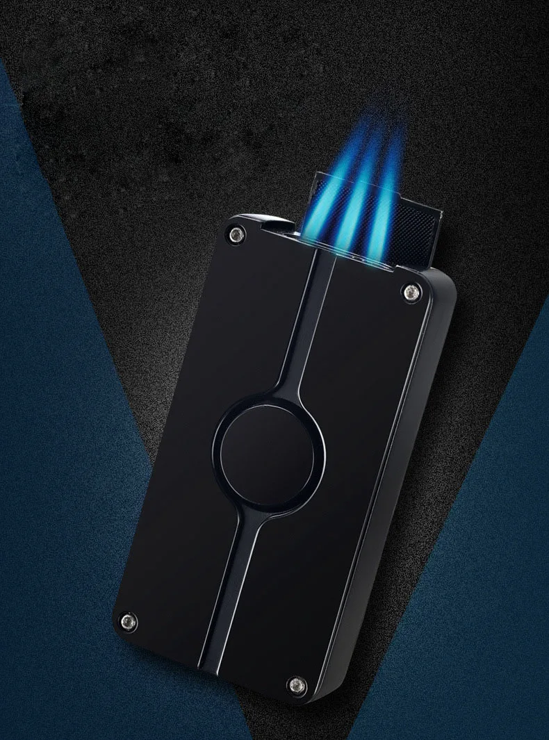Whether you’re at home or attending a social gathering, this torch lighter is an essential cigar smoking accessory. Its sleek design makes it a great gift option for aficionados or anyone looking to upgrade their smoking tools. The pleasure of a finely lit cigar starts with a high-quality lighter, and the Fashion Triple Flame Metal Butane Gas Torch ensures you always make the best first impression.