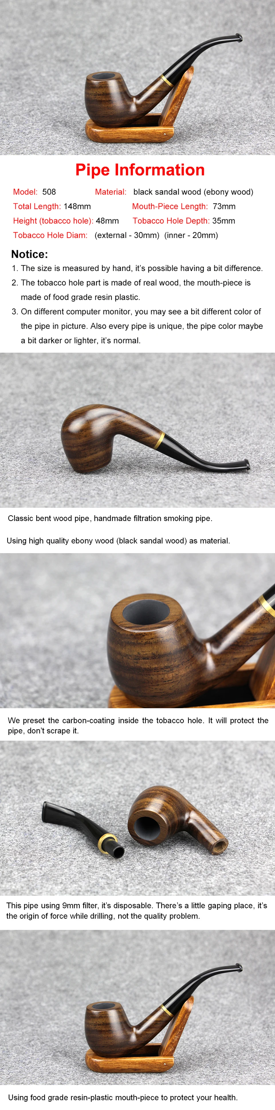 Elevate your smoking experience with the New Metal Ring Smoking Pipe, a masterpiece crafted from ebony wood. This handmade bent wooden tobacco pipe offers not only timeless style but also a superior smoking pleasure with its carefully designed 9mm filter. For aficionados and casual smokers alike, this pipe is poised to be your next reliable companion. Whether you’re an old soul cherishing the art of pipe smoking or you’re searching for the perfect gift for a smoking enthusiast, this tobacco pipe embodies sophistication and functionality.