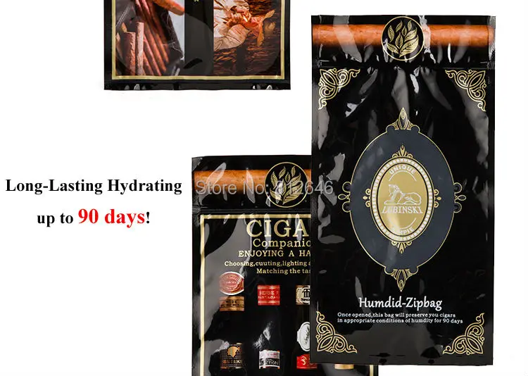 Bid farewell to dry or overly humid cigars. Our plastic hydrating zip bag uses precise humidity control for cigars, effectively maintaining ideal moisture conditions for up to 90 days. Expertly crafted to support cigar moisture preservation, this portable solution is both a collector’s companion and a smoker’s delight.