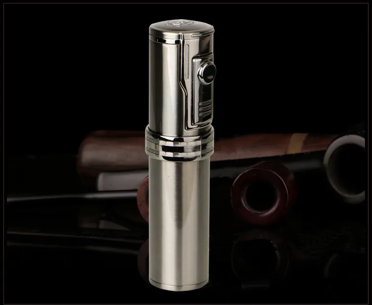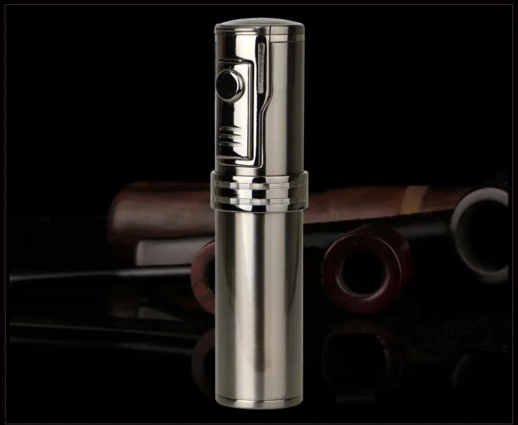 Discover the ultimate companion for every cigar enthusiast with the Portable Titanium Brown&Silvery Three Torch Jet Air inflation Cigar Lighter With Cigar Drill. This sophisticated tool not only boasts a stunning titanium finish but also combines cutting-edge functionality with sleek design. Ideal as a cigar smoker gift, this lighter is a must-have addition to any cigar accessory set.