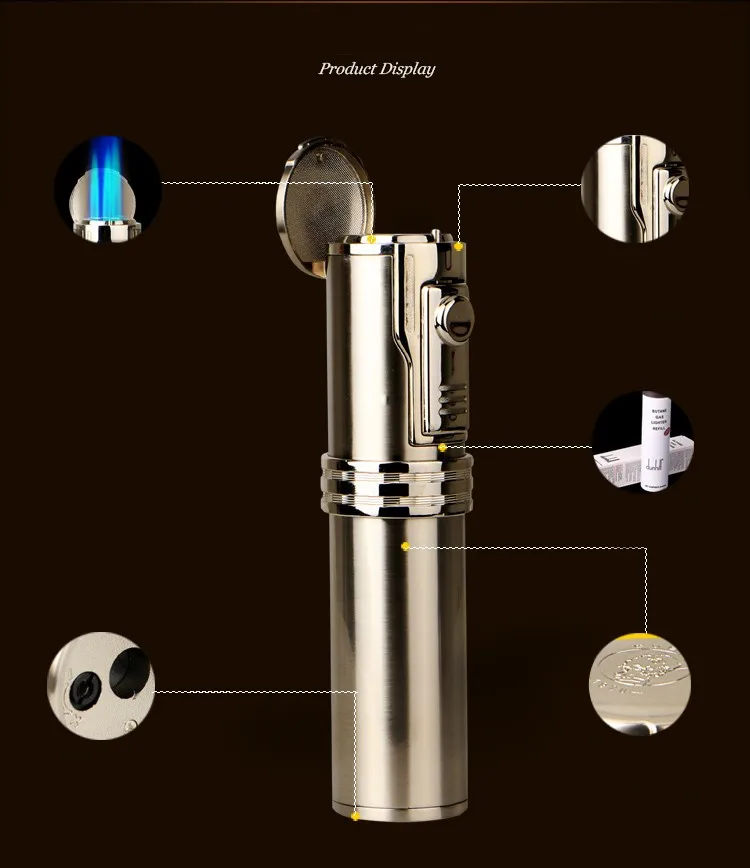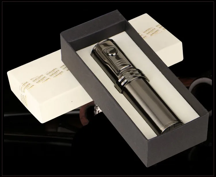 Discover the ultimate companion for every cigar enthusiast with the Portable Titanium Brown&Silvery Three Torch Jet Air inflation Cigar Lighter With Cigar Drill. This sophisticated tool not only boasts a stunning titanium finish but also combines cutting-edge functionality with sleek design. Ideal as a cigar smoker gift, this lighter is a must-have addition to any cigar accessory set.