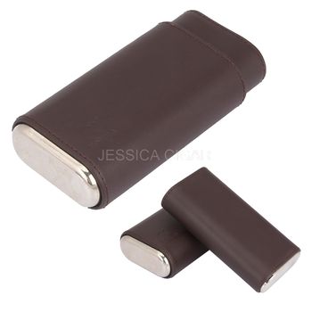 Leather Cigar Humidor Box 3 Tube Case with Metal Bottom