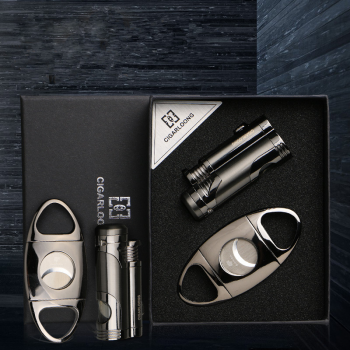 Titanium Jet Flame Cigar Lighter and Cutter Set Windproof Business Gifts with Gift Box