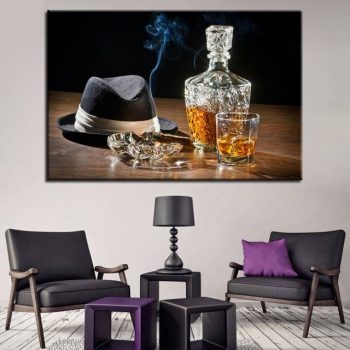 Wine Smoke Hat Canvas Wall Art Single Panel Modern Decor for Living Room