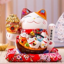 7-Inch Lucky Cat Waving Hand Ornament Gold for Good Fortune Decor