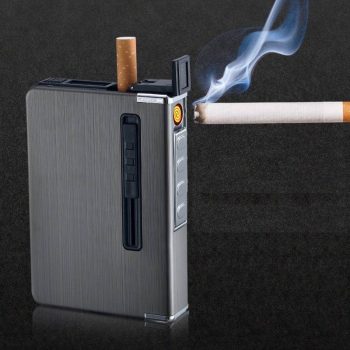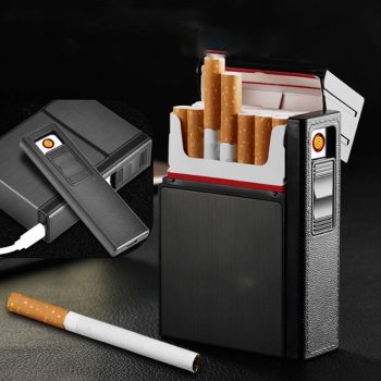 Metal Cigarette Box with USB Electronic Lighter Flameless Windproof for Men