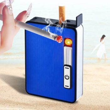 Windproof Cigarette Case USB Charging Electric Lighter Automatic Smoke Box for Men