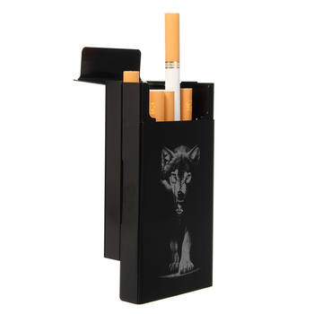 Black Wolf Metal Cigarette Case Personalized Ultra Thin Automatic Holder Box Gift