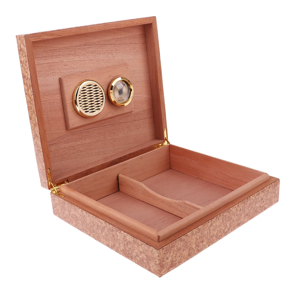 Our cigar humidor integrates state-of-the-art technology and premium materials to provide exemplary humidity control for cigars. The built-in humidifier ensures consistent moisture levels, while the hygrometer allows for precise monitoring. Crafted from high-quality Spanish cedar wood, this humidor offers natural properties that further enhance humidity regulation.