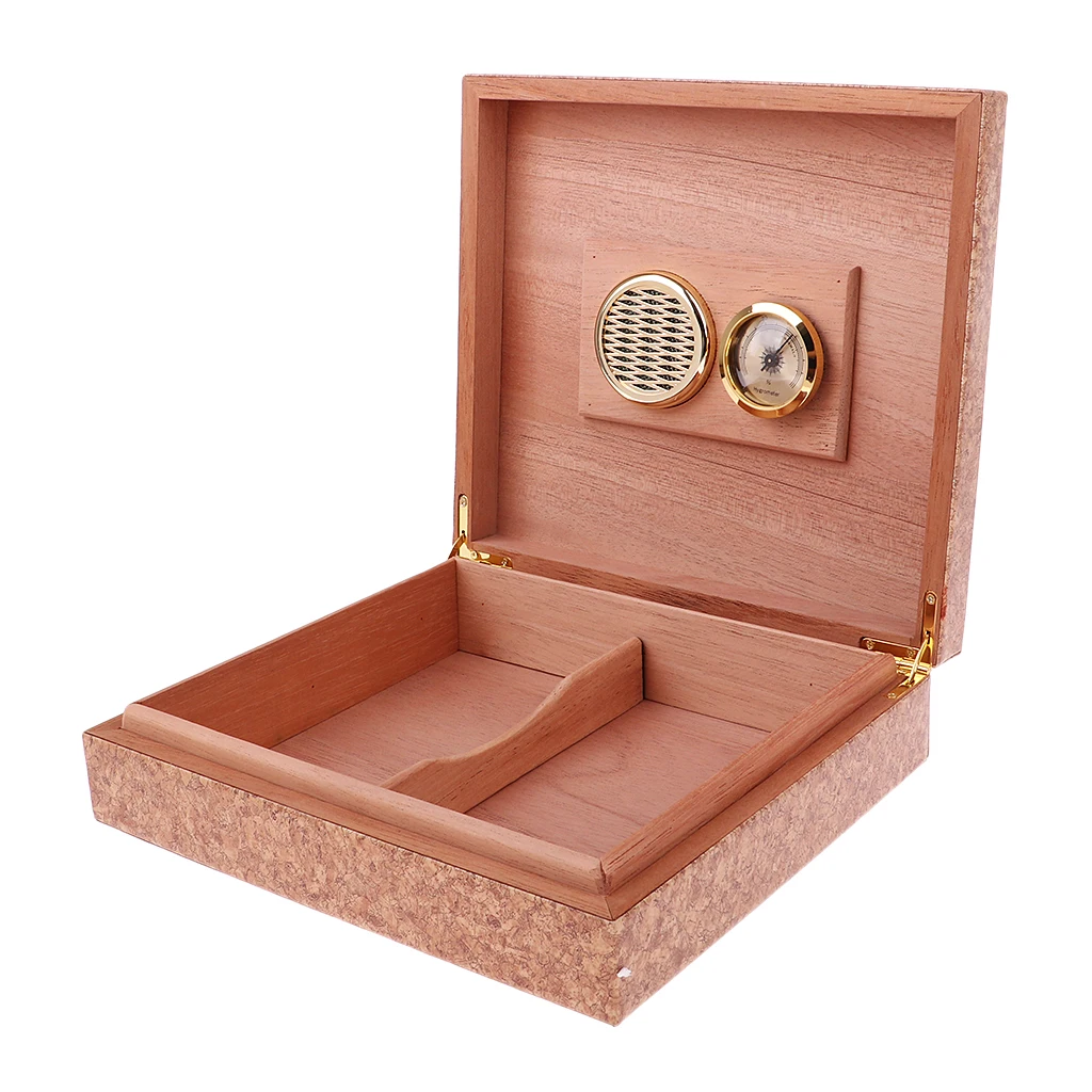 This cedar wood humidor not only functions with excellence but also adds a touch of sophistication to your collection. Its precise design makes it an essential accessory for cigar aficionados who cherish their cigars. Ideal for personal use or as a distinctive gift, this cigar box with a hygrometer ensures that your cigars are always ready to roll in peak condition.