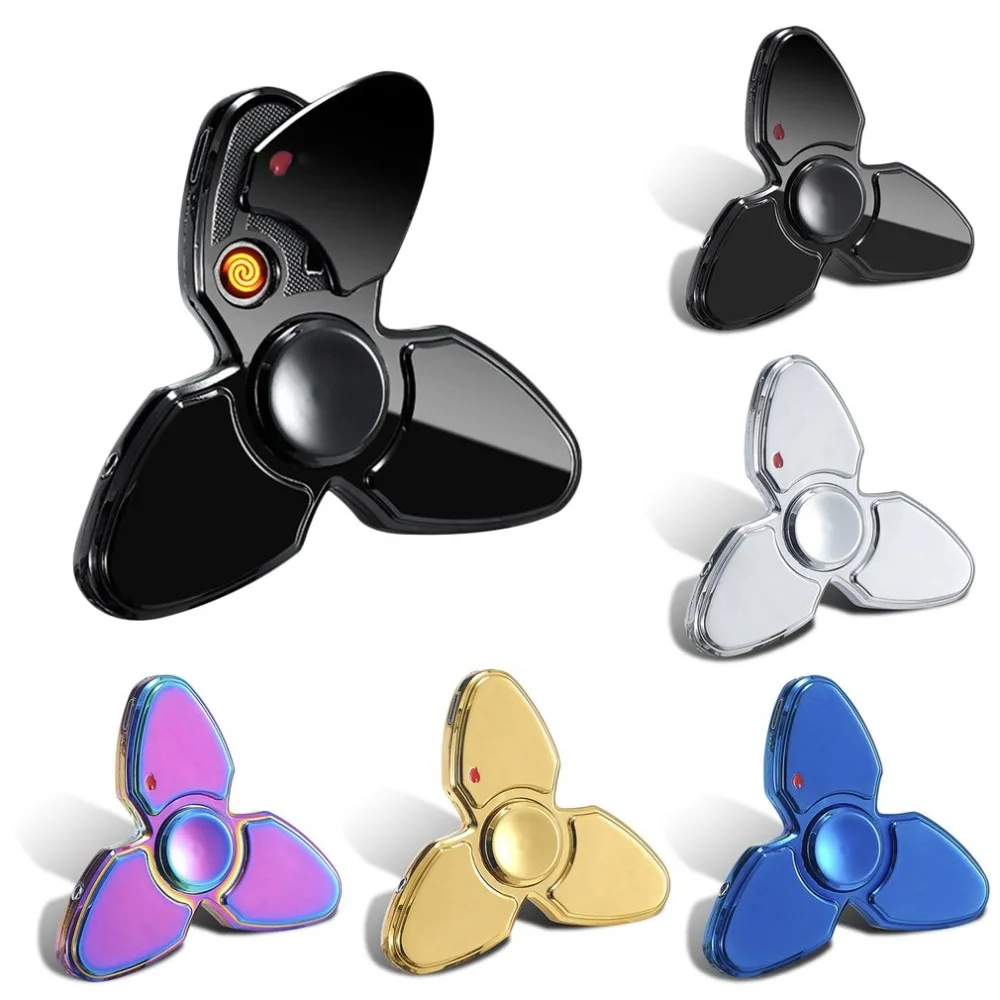 Trefoil Fingertip Gyro Rotate Electronical Cigarette Lighter Slim Windproof Cigar Lighter USB Rechargeable Charging Lighter