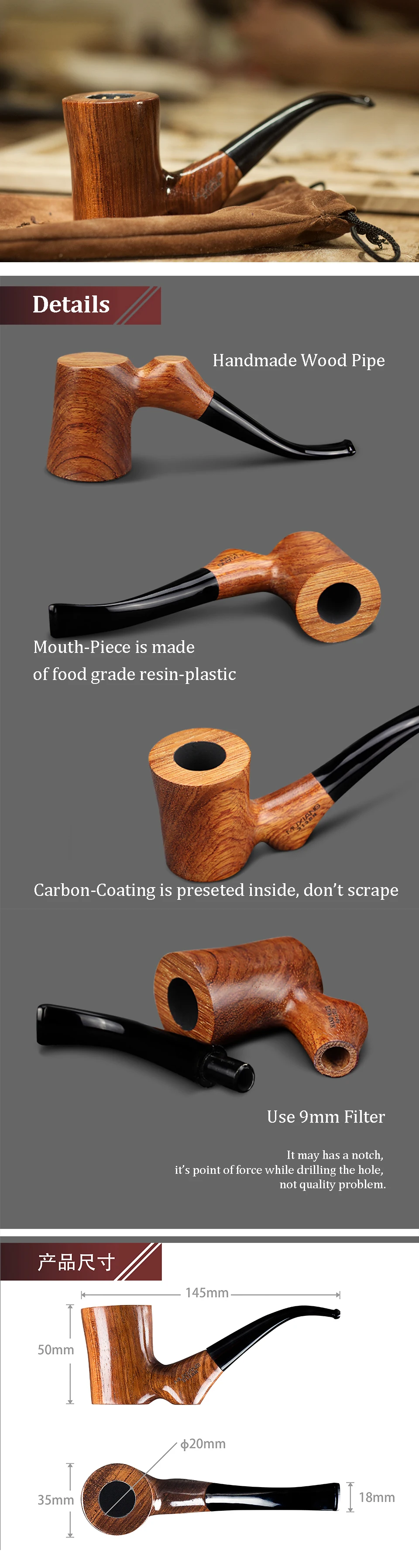 - Smooth Draw: Equipped with a 9mm filter, this pipe offers a refined smoking experience with reduced nicotine and tar intake.