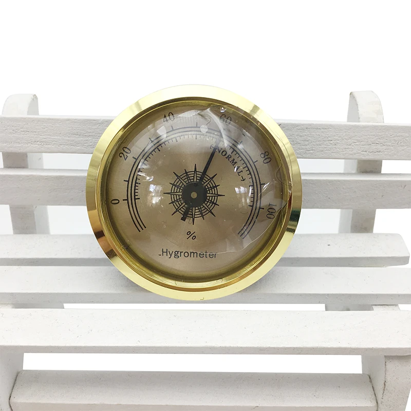 The Whole Round Shape Golden Hygrometer is the essential tool for any cigar lover aiming for precise and stylish cigar storage. Designed specifically as a hygrometer for cigar humidors, it ensures your precious cigars are stored at the optimal humidity level. With its striking golden finish, this hygrometer adds a touch of elegance to your humidor while providing vital humidity readings.