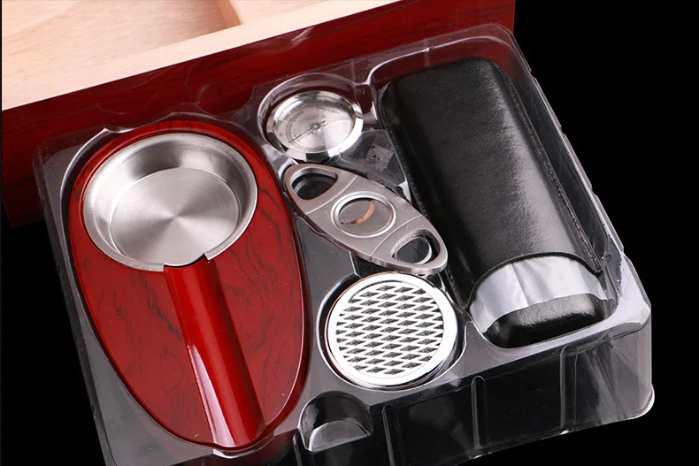 Introducing the Wooden Wine Red Cigar Humidor with Cigar Ashtray, a perfect fusion of style and practicality. Designed for cigar aficionados and those looking to impress, this humidor ensures your cigars are kept in optimal conditions while exuding a classic charm. Its rich wine red finish adds a sophisticated touch, making it a prized possession for any connoisseur.