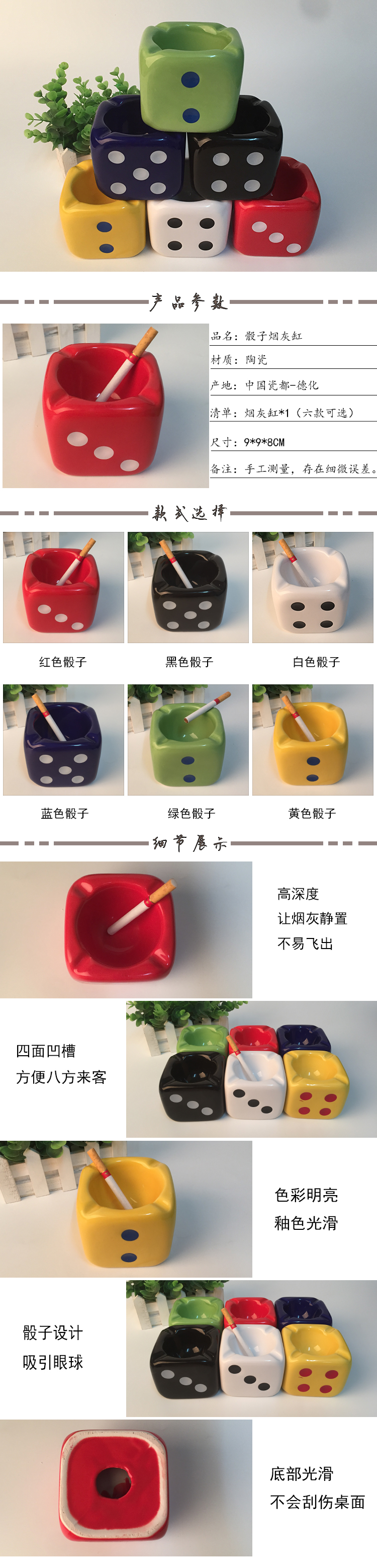 Introduce a sense of European charm to your space with the WSHYUFEI Creative Dice Ceramic Ashtray. This uniquely designed ceramic ashtray is more than just a smoking accessory—it’s a statement piece that doubles as a cute ceramic ornament for your office or living room. Crafted with attention to detail, the ashtray offers a smokeless experience, making it a friendly option for both smokers and non-smokers alike. Perfect for those who appreciate style and functionality in their everyday items.