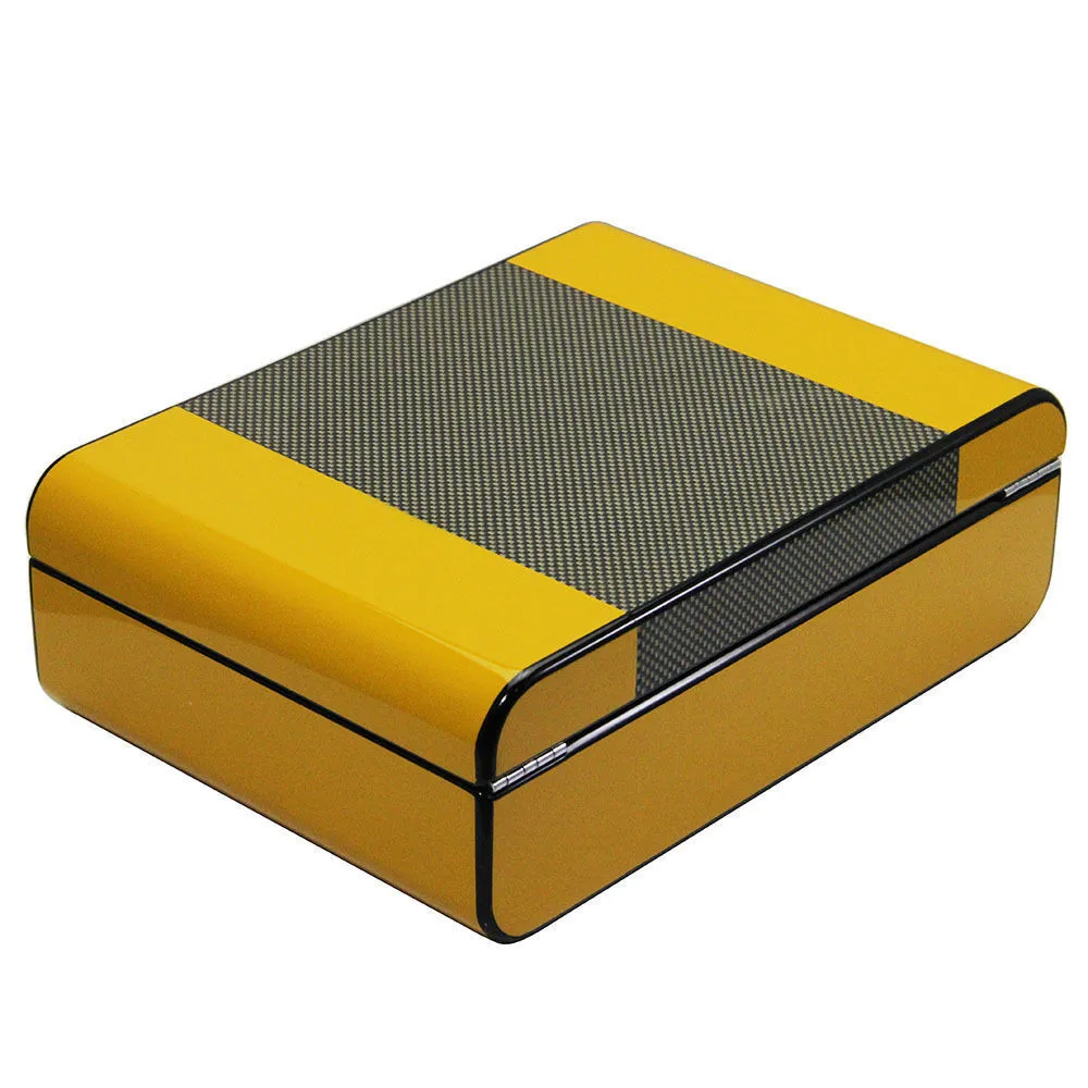 Yellow Cedar Wood Cigar Humidor with Cigar Hygrometer Humidifier